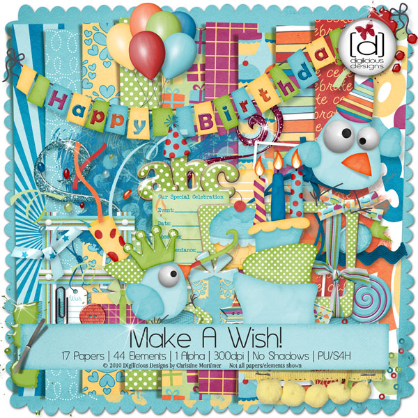If you are looking for a happy kit you can find it right here! I had a lot of fun scrapping birthday pics but this kit could be used for any cheerful activity that you want bright colors for. Here's what I did with it: